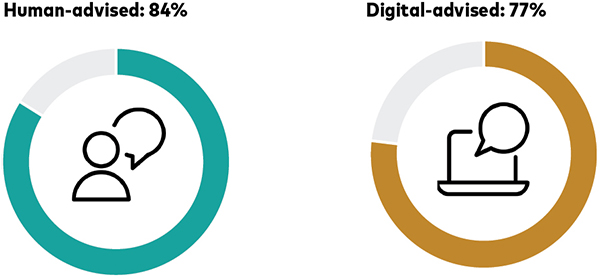 84% of human-advised investors report being satisfied with their advice compared with only 77% of digital-advised investors.